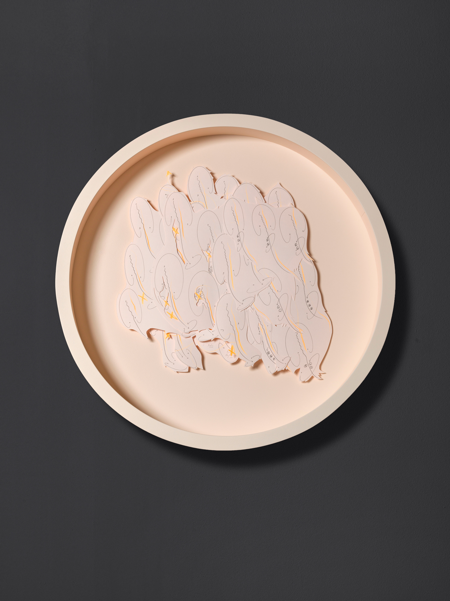 Oil chalks, Ink, graphite on paper on wood, unique, signed