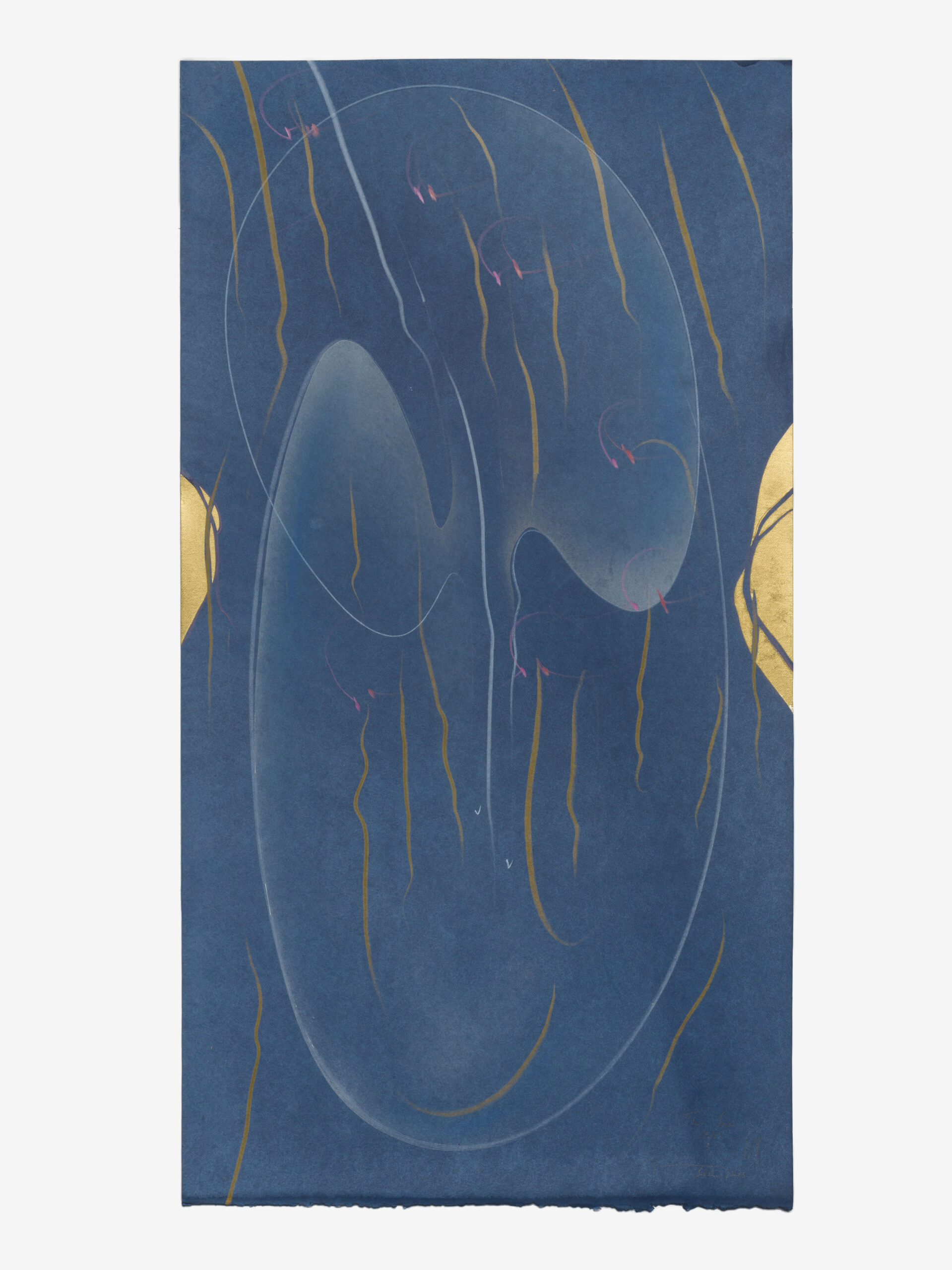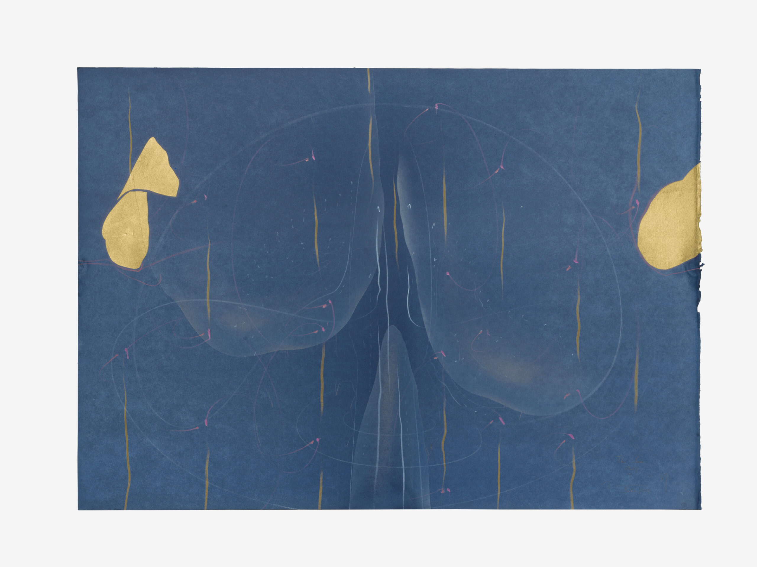 india ink, gold leaf, pastels, oil chalk, graphite on paper, unique, signed